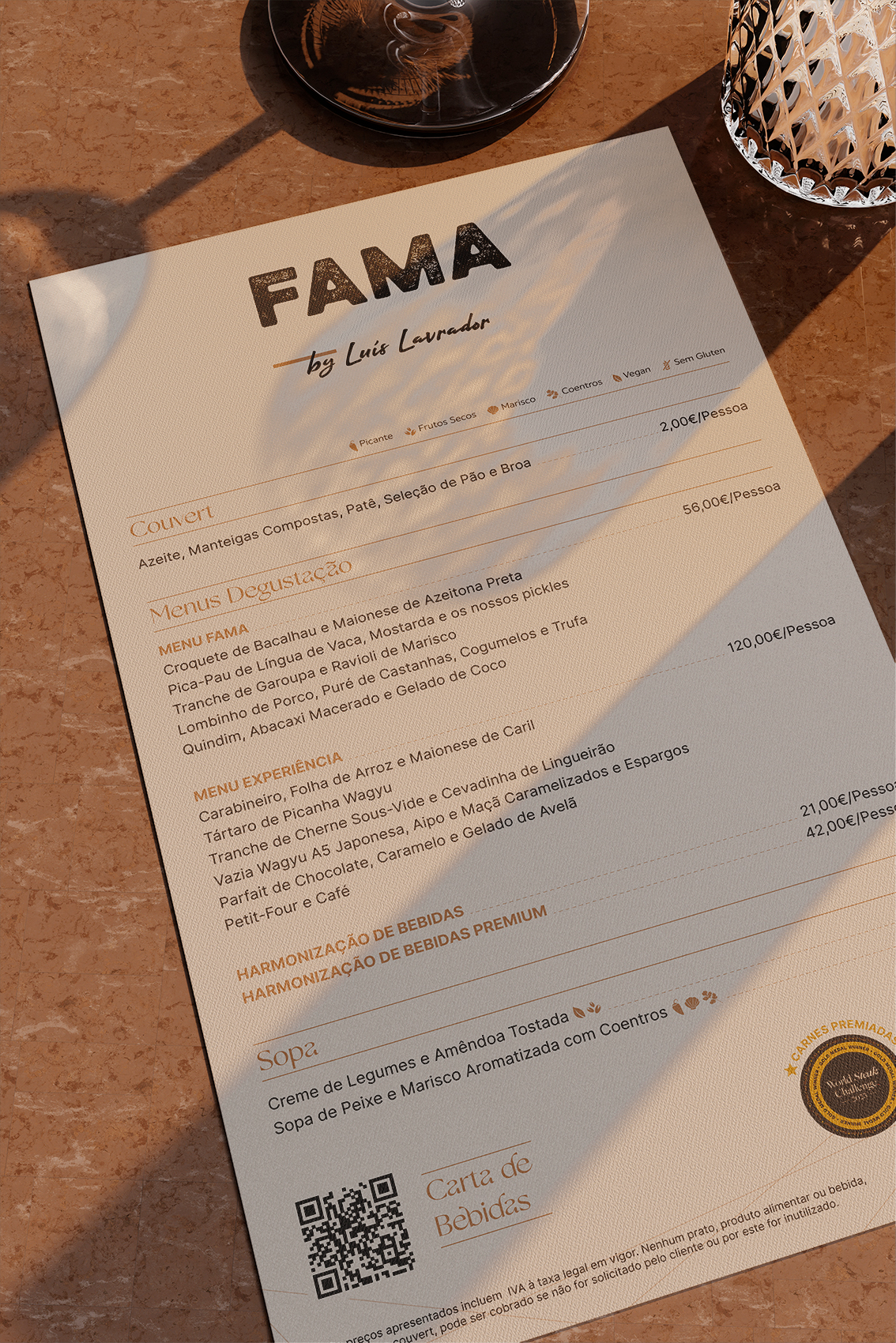 Na AURATUS, compreendemos que a experiência gastronómica é uma fusão de sabores, ambiente e apresentação. O nosso compromisso foi refletir essa excelência em cada detalhe, elevando a percepção visual e tátil de cada cliente. O resultado é uma identidade que celebra a maestria culinária do FAMA e proporciona uma experiência completa e memorável a todos os que têm o prazer de visitar o restaurante.