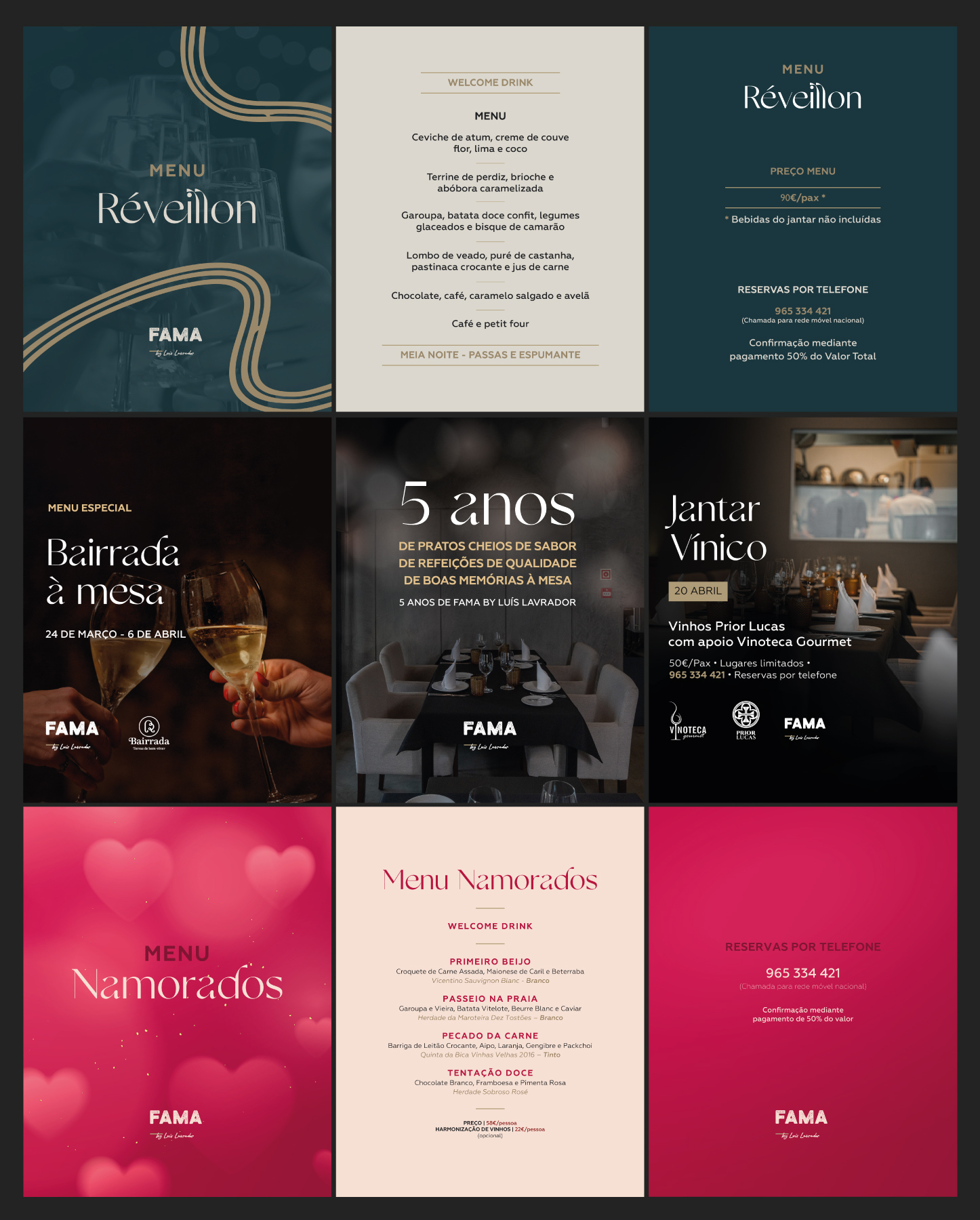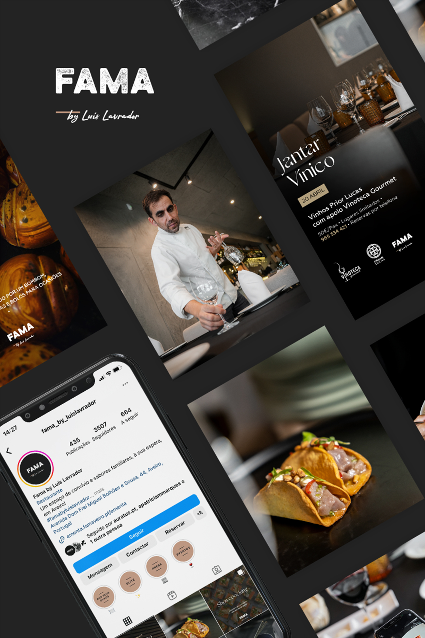 No entanto, apesar da excepcional qualidade das refeições, o FAMA by Luís Lavrador percebeu a necessidade de uma imagem que estivesse à altura da sua experiência culinária excepcional. A AURATUS, em parceria com o Chef Lavrador, empreendeu a missão de criar uma identidade visual que transcende todas as fronteiras, desde a comunicação digital, através das plataformas de avaliação, redes sociais e ementas online, até à comunicação tradicional e física, por meio da concepção de ementas, cheques prenda, cartões de visita, vestuário laboral e toda a produção e branding necessários para destacar a singularidade do FAMA.